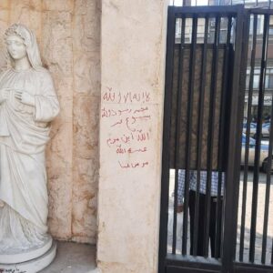 وبحسب المرصد السوري لحقوق الإنسان، دوّن المقتحم على جدران الكنيسة عبارات تهديدية منها: “لن يبقى في أرض الشام مشركون بإذن الله… لقاؤنا قريب يا خنازير الصليب”.