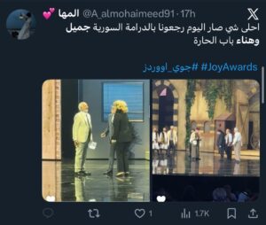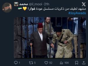 واختُتمت الفقرة بتفاعل جماهيري واسع عبر مواقع التواصل، حيث عبّر المتابعون عن إعجابهم بإعادة إحياء هذه الأعمال، مؤكدين أن ختام Joy Awards شكّل احتفالًا حقيقيًا بذاكرة الدراما السورية التي ما زالت حاضرة بقوة في وجدان الجمهور العربي.